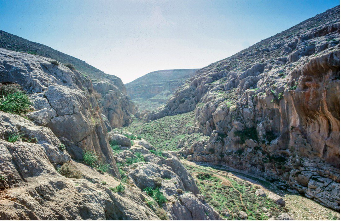 ESV 1 Samuel 14:4-6 Within the passes, by which Jonathan sought to go over to the Philistine garrison, there was a rocky crag on the one side and a rocky crag on the other side. The name of the one was Bozez, and the name of the other Seneh. 5 The one crag rose on the north in front of Michmash, and the other on the south in front of Geba. 6 Jonathan said to the young man who carried his armor, “Come, let us go over to the garrison of these uncircumcised. It may be that the Lord will work for us, for nothing can hinder the Lord from saving by many or by few.”